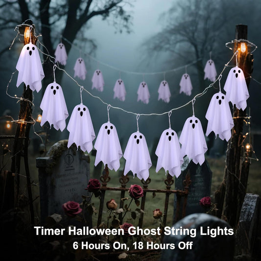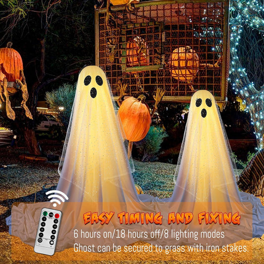 2Packs Halloween Decorations Outdoor,Halloween Party Decorations Indoor,Spooky Ghost Decor with Remote Control String Lights,Halloween Ghost Lights for Porches Yards Gardens Lawn