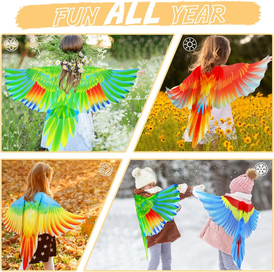 Bird-Costume-Parrot-Wings for Kids with Bird Headbands, Boys Girls Eagle Dress-Up Cape Halloween Party Favors Gifts