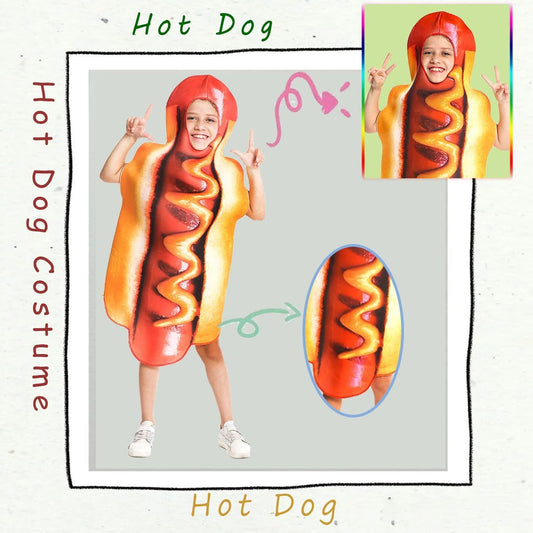 Boy Hot Dog Costume Role Play Food Hotdog Jumpsuit Cosplay Kids Girl Halloween Costumes (Fit 4-8 Years Old)