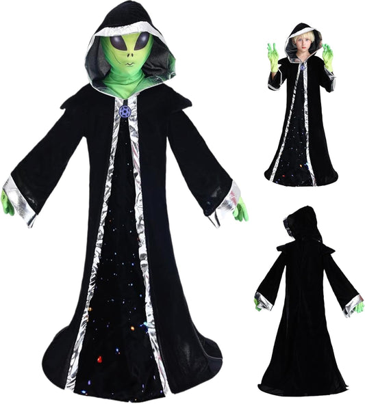 Alien Costume Kids Halloween Outfit - Hooded Robe, Mask, M Size