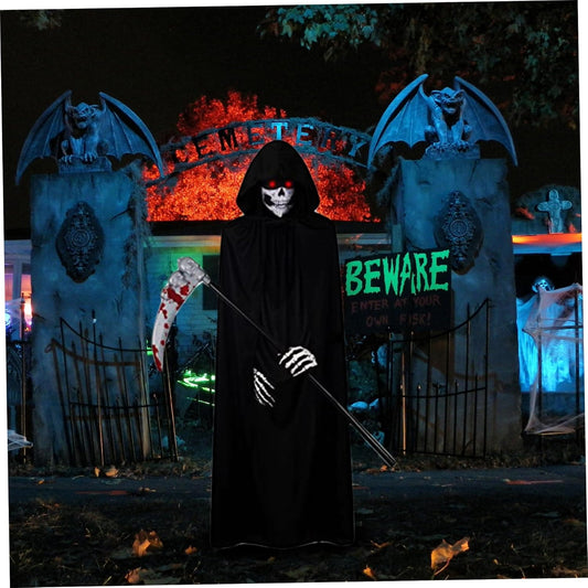 Scary Costumes,Grim Reaper Costume 5Pcs/Set for Kid-Small Glowing Eyes Cosplay Outfits for Kids Black Scary Halloween