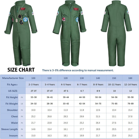 Kids Fighter Pilot Costume - Air Force Flight Suit Roleplay Dress up with Aviator Accessories for Girls Boys