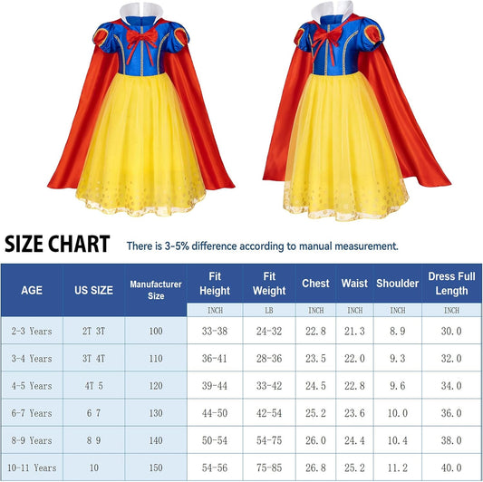 Princess Snow White Dress Costume for Toddler Girls Birthday Halloween Cosplay Party with Accessories 2-11 Years