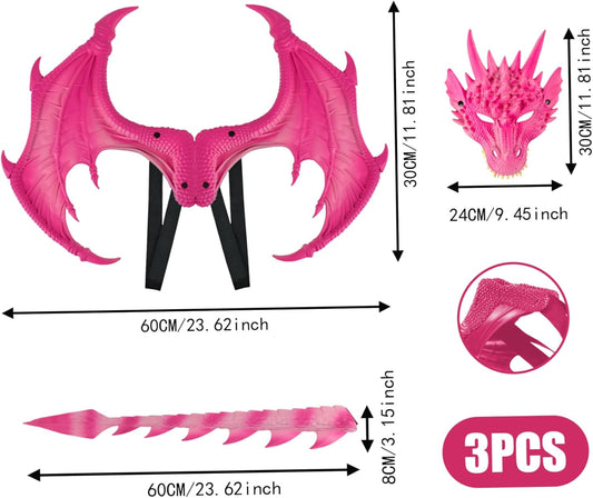 Dragon Kids Halloween Dragon Set 3PCS Face Covers Tail Cosplay Costume Photo Props Red