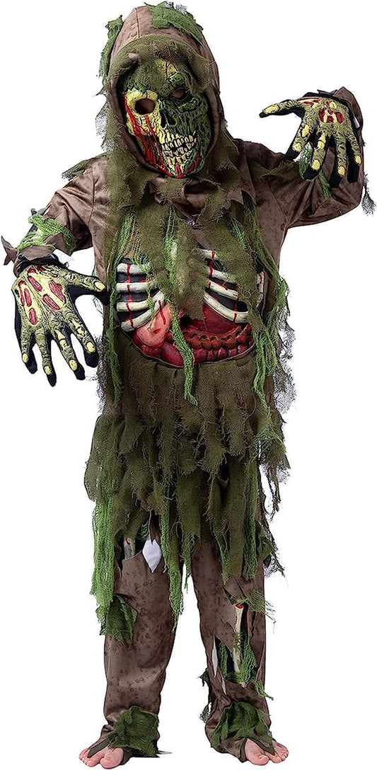 Swamp Deluxe Skeleton Living Dead Zombie Costume for Halloween Kids Monster Role-Playing
