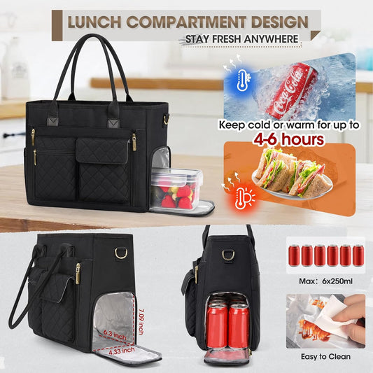 Teacher Tote Bag with Lunch Compartment 15.6 Inch Laptop Bag for Women Large Work Bags Nurse Bag Laptop Briefcase