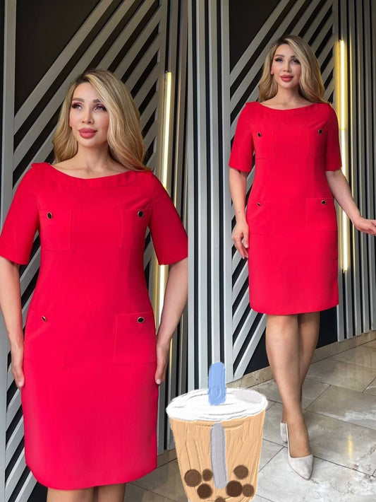 🔴 Robe Rouge à Poches Métallisées – Énergie Urbaine et Style Structuré - RFT