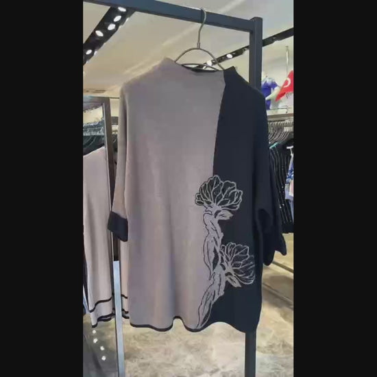 🌸 Pull Fleur Bicolore – Douceur Graphique et Élégance Décontractée - HFT