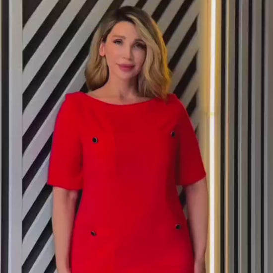 🔴 Robe Rouge à Poches Métallisées – Énergie Urbaine et Style Structuré - RFT