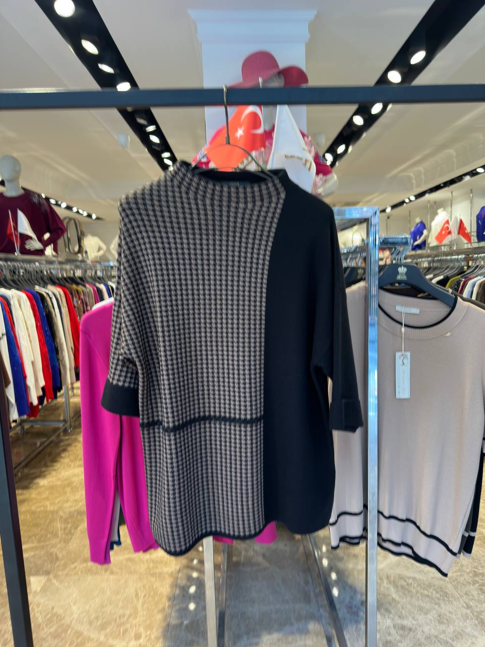 🟫 Top Bicolore Pied-de-Poule – Style Géométrique et Élégance Contrastée - HFT