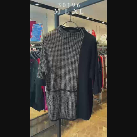 - Design bicolore asymétrique Motif pied-de-poule à gauche, noir uni à droite pour un effet visuel fort. Tissu doux et extensible Idéal pour un port quotidien, avec une sensation agréable sur la peau.